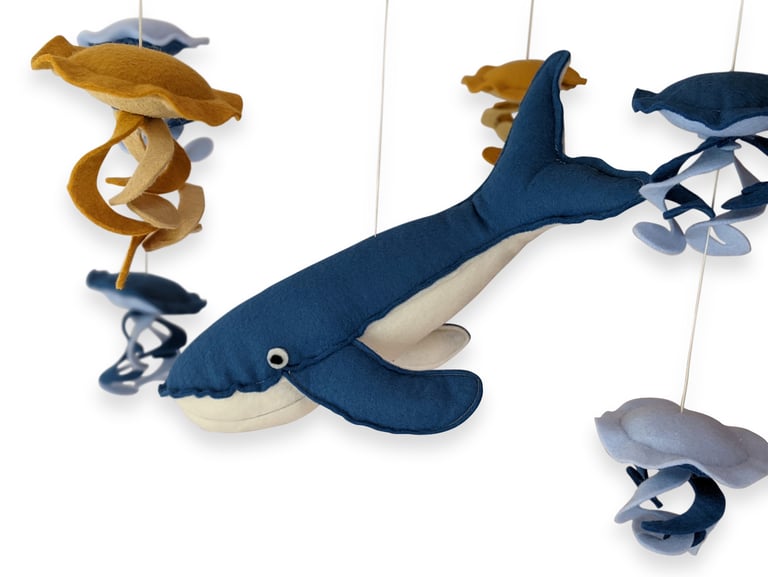 If you are looking for modern nursery ideas our Under the Sea felt mobile is a wonderful addition and will fit seamlessly into many themes, including a gender neutral nursery.